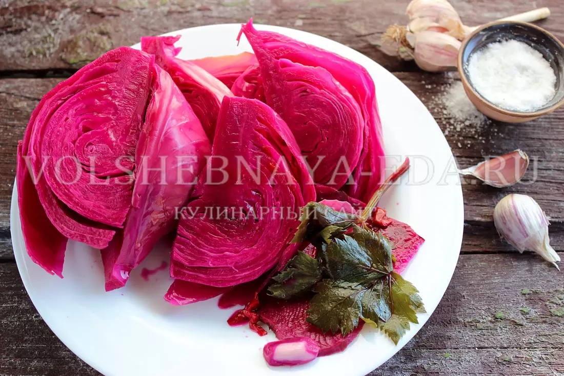 После завершения процесса квашения капуста имеет великолепный малиновый цвет и хрустящую текстуру. К ней идеально подойдут картофель и мясные блюда. Закуска получается не только яркой, но и невероятно вкусной и полезной. Приятного аппетита!
