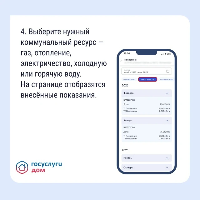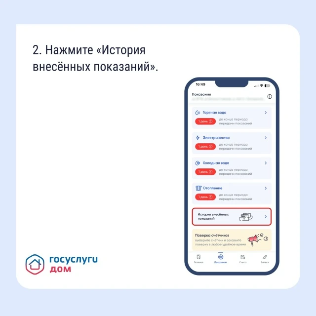 Если вам нужно найти историю показаний счётчиков, например, чтобы сравнить расход или проверить, не было ли ошибки, используйте «Госуслуги Дом».
