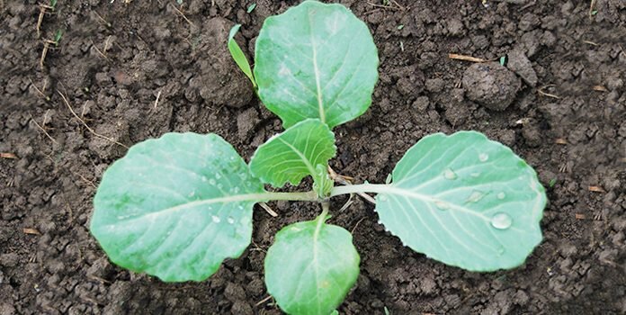 Семена капусты опускаются в подготовленные лунки на глубину 1-1,5 см. Рекомендуется помещать по три семечка в каждую лунку, так как не все могут взойти. Таким образом, обеспечивается надёжность — даже если из трёх семян прорастёт только одно или два, можно будет выбрать самые крепкие всходы.