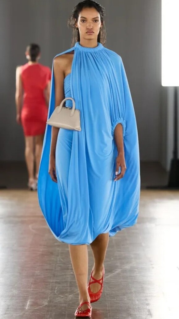 На подиумах модных домов, таких как Coperni, Jean Paul Gaultier и Tory Burch, ледяной голубой цвет демонстрируется как один из основных трендов, который будет в моде как минимум несколько сезонов подряд.