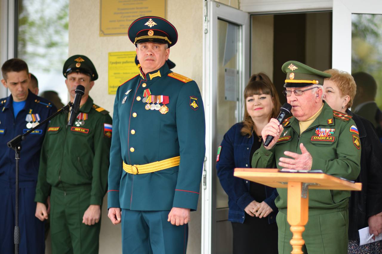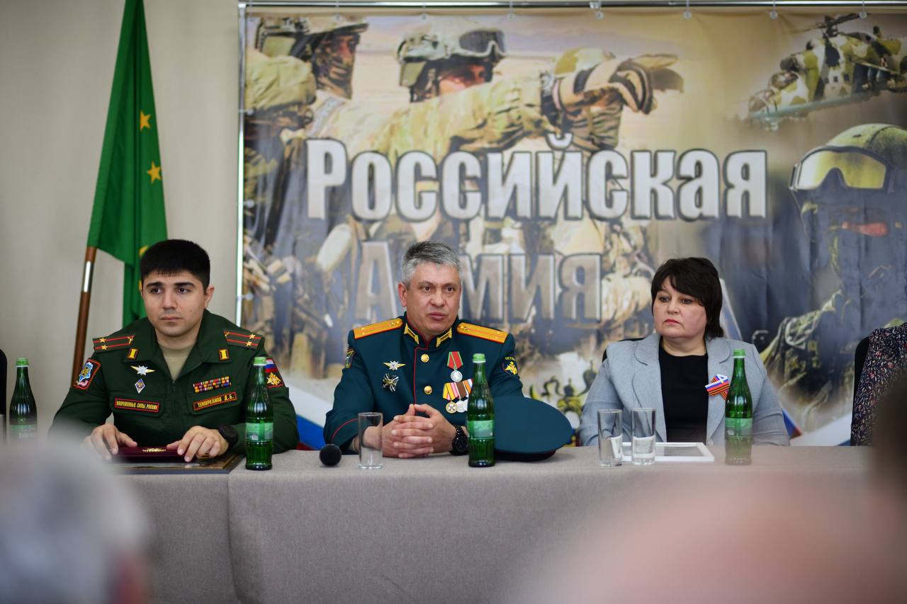 Перед собравшимися выступили врио заместителя командующего войсками ЮВО по военно-политической работе подполковник Дереник Темирханов, военный комиссар Майкопа Алексей Санташов и председатель Совета ветеранов республики Аслан Куадже.